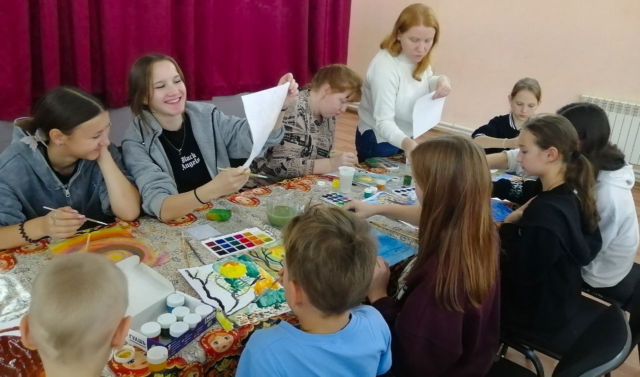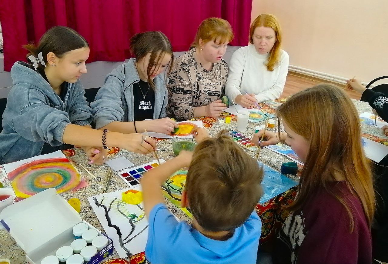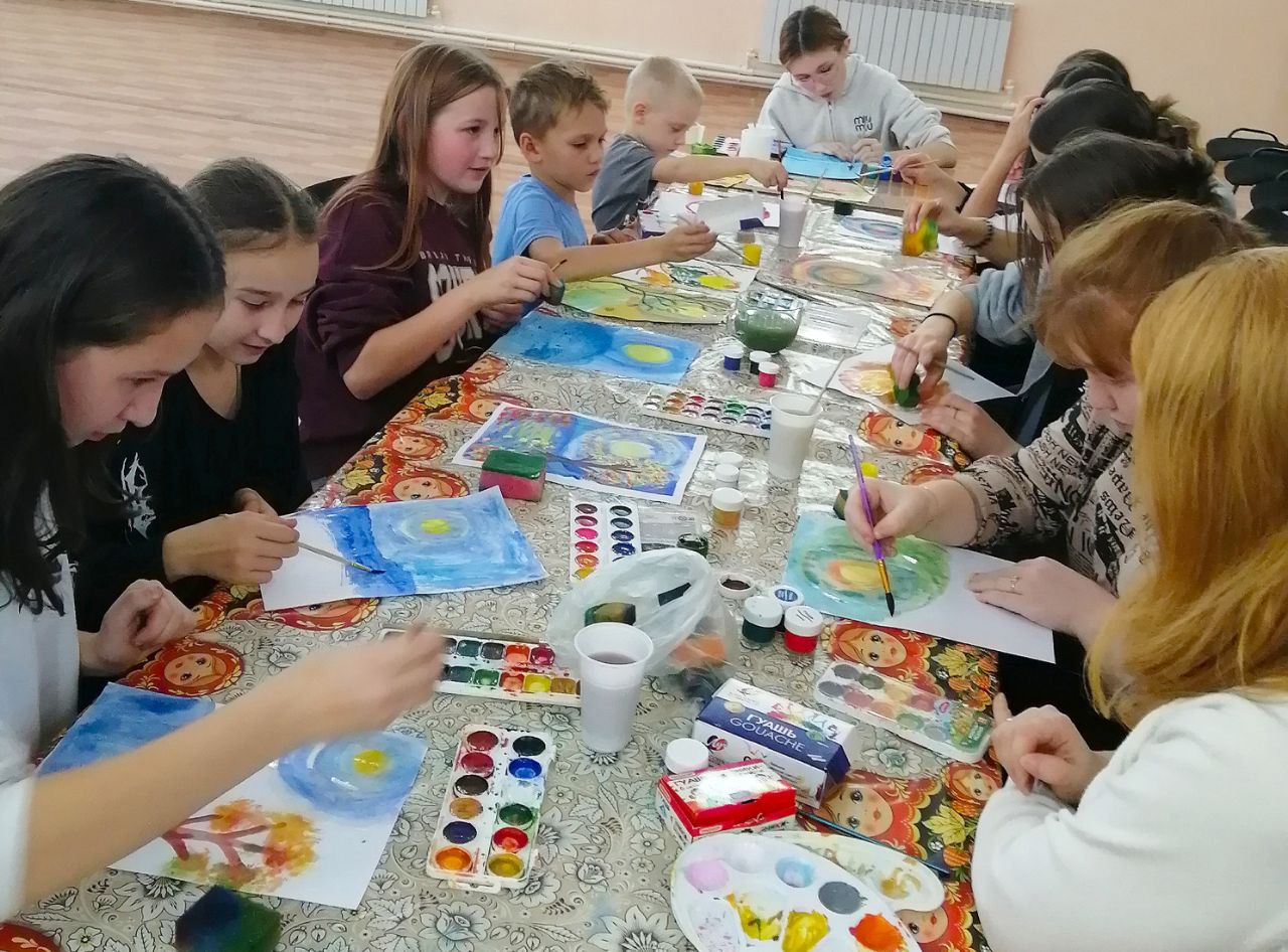 Специалисты Старосумароковского многофункционального центра провели для юных жителей села практическое занятие по правополушарному рисованию "Разноцветная осень".