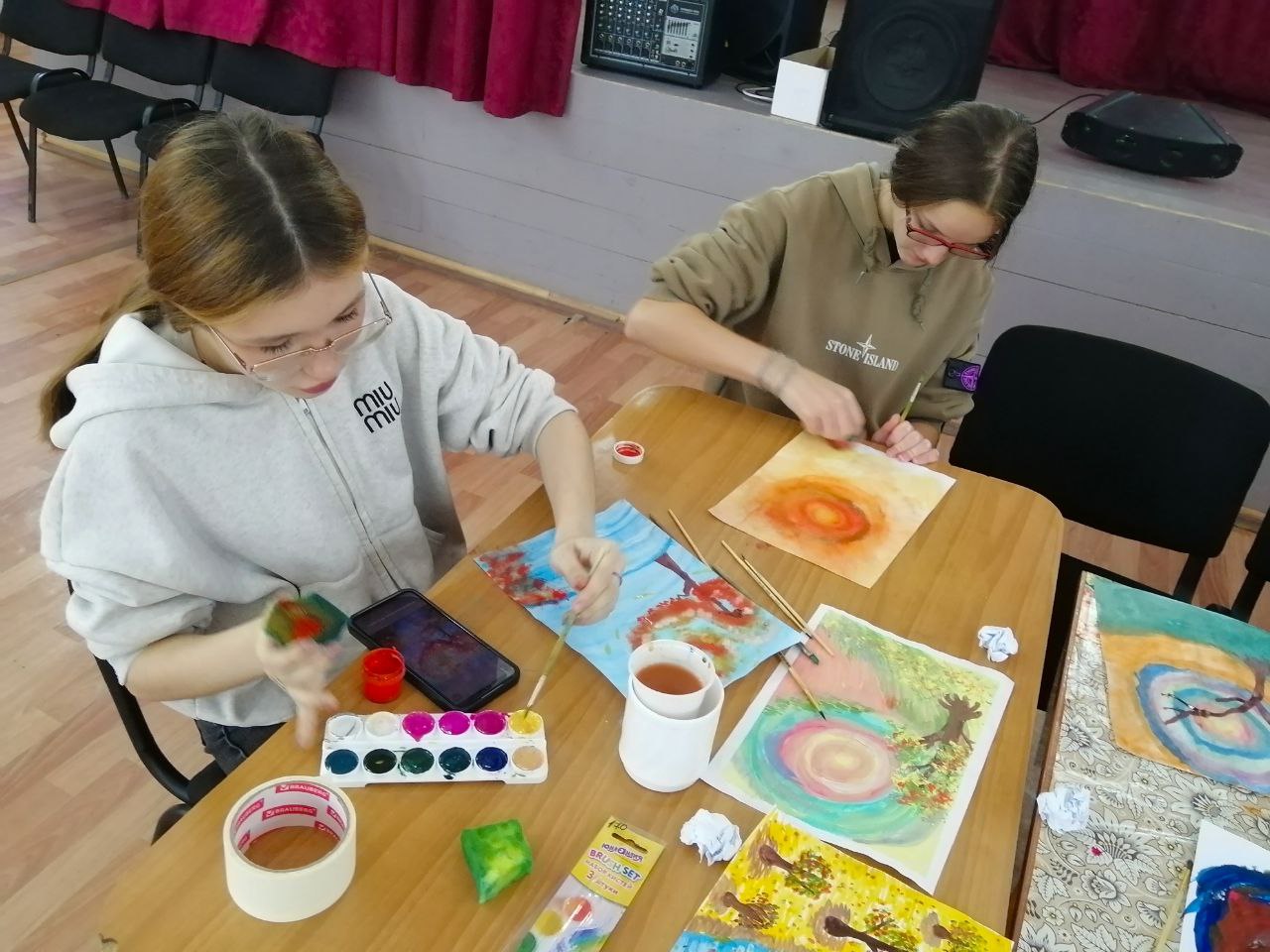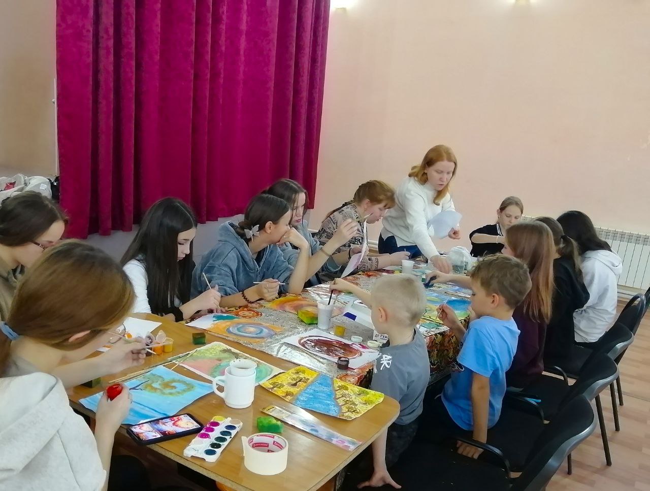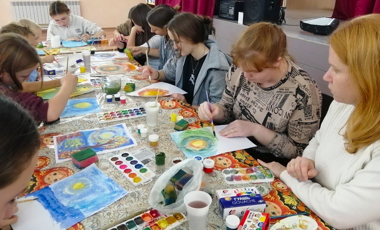 Специалисты Старосумароковского многофункционального центра провели для юных жителей села практическое занятие по правополушарному рисованию "Разноцветная осень".