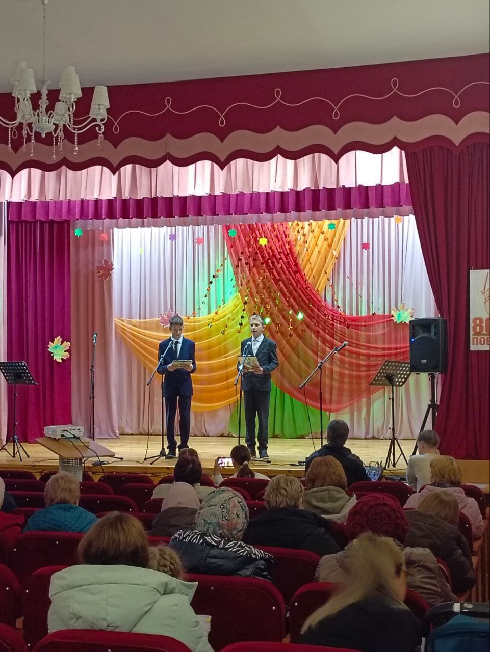 С наступившими праздниками поздравили пожилых людей и учителей. В фойе были оформлены осенние выставки. Яркие номера приглашенных артистов Петровского СДК и Карабашского дома культуры сменяли друг друга под громкие аплодисменты зрителей.